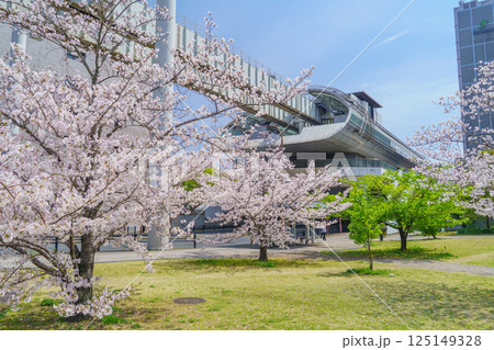 【千葉県千葉市】都川公園の桜と千葉都市モノレール・県庁前駅