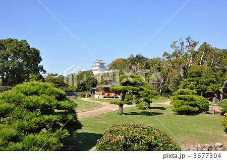 坤櫓を背景に武蔵の庭園の御茶屋の風景