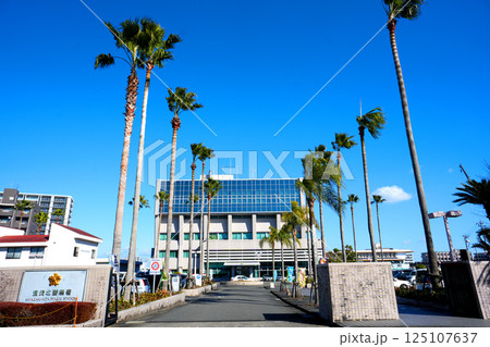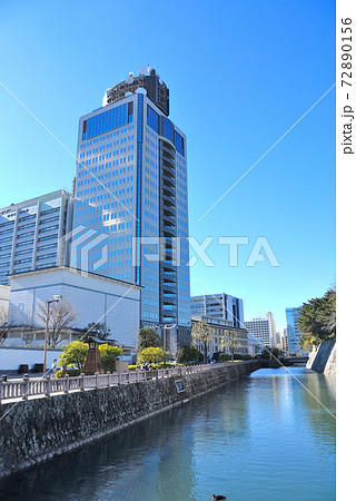 美しい空と夕暮れのビル風景「県庁風景」熊本県庁