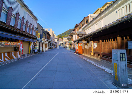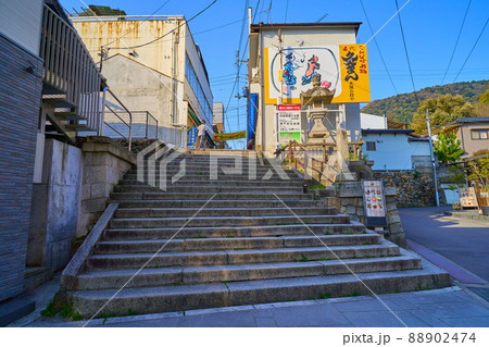 香川県琴平町のこんぴら参道から店や石段の始まりを見る