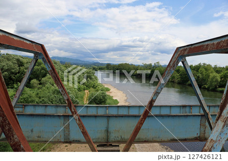 旧徳田橋越しに望む北上川