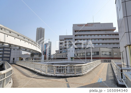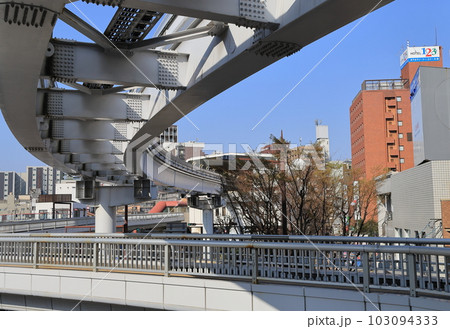 小倉北区中心部の街並み(モノレールと歩道橋の立体交差)