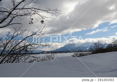雪の桧原湖畔と磐梯山・会津(福島県)