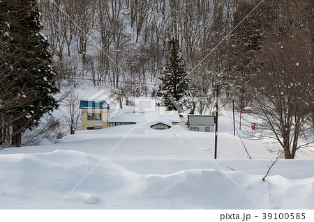 雪の桧原湖畔のトンネル道・会津(福島県)