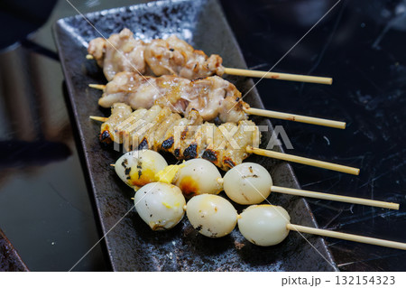 焼き鳥盛り合わせl。もつ焼き屋で晩御飯。静岡県下田市-2025