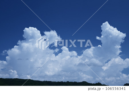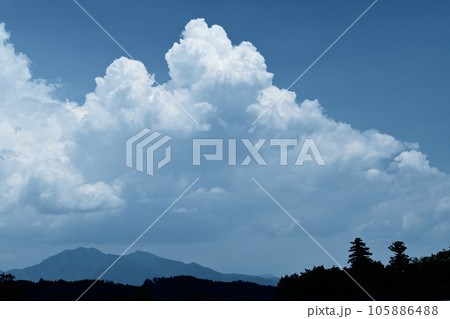 北杜市白州町、夏の青空に高く湧き上がる入道雲