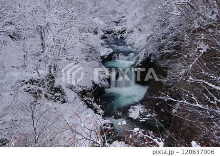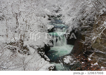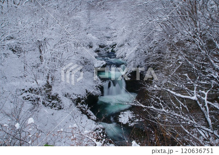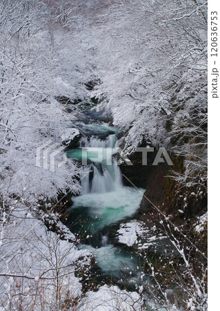 真っ白な霧氷に囲まれた鳳鳴四十八滝の冬景色 Ver5