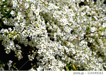 春の日差しを受けて眩しく咲き誇るユキヤナギ