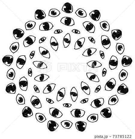 見つめる黒色の目玉と囲む有刺鉄線のイメージ素材