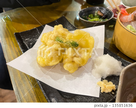 真鱈の白子。和食の天ぷら。
