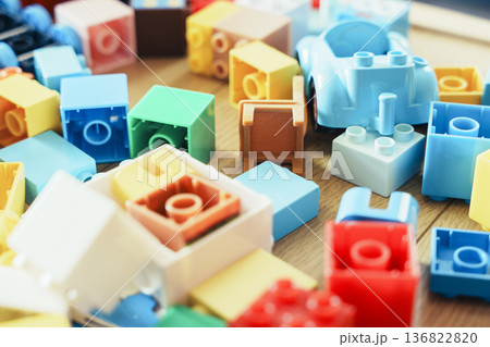 カラフルなおもちゃのブロックが敷き詰められた背景素材 プレゼンやスライドショー・企業資料に使えるポッ