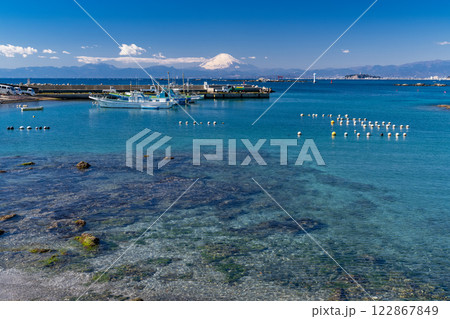 富士山が見える神奈川県三浦郡葉山町の真名瀬漁港