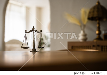 机に置かれた正義の天秤