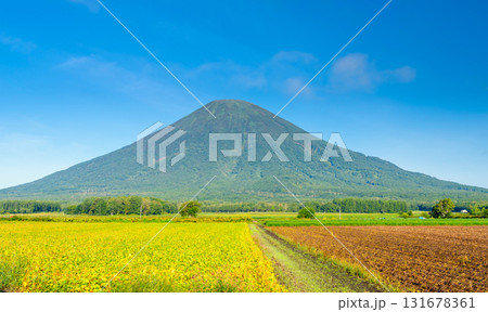 北海道真狩村の大豆畑と羊蹄山(蝦夷富士)の盛夏の風景を撮影