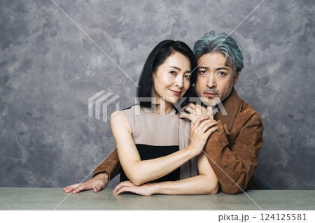 おしゃれなシニア・ミドルエイジ男女のカップルフォト