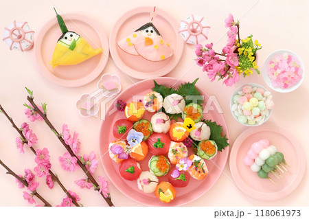 おひなまつり 桃の節句 エディブルフラワーを添えたお花の手まり寿司