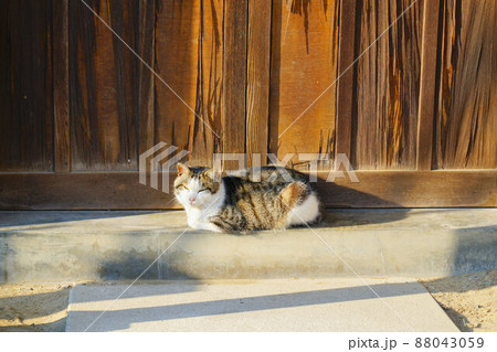 木戸の前で日なたぼっこするネコ 岡山県笠岡市真鍋島
