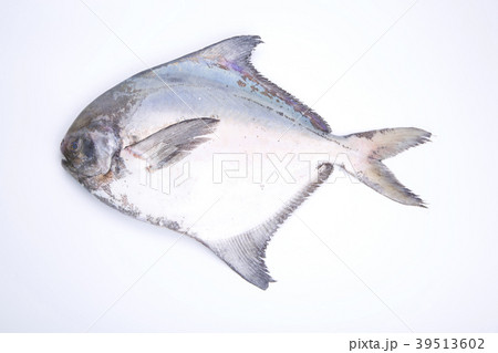 Set of silver Pomfret fish with striking details of fins and scales isolated on white Transparent background.