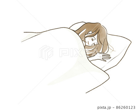 目を閉じている若い女性のイメージイラスト - 主線あり
