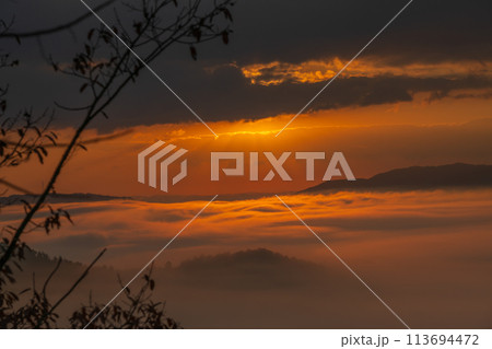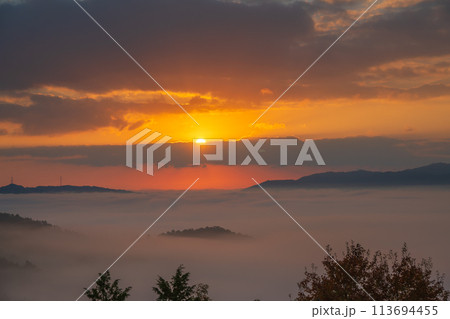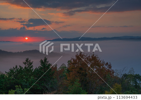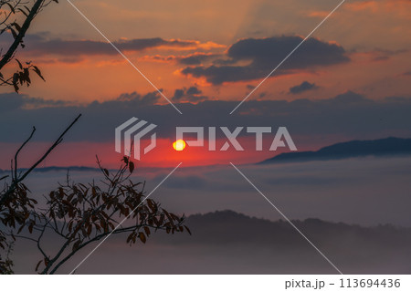 亀岡市稗田野町の山中にある寺院獨鈷抛山 千手寺から臨む雲海