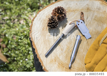 ファイヤースターターと松ぼっくり 天然の着火剤 キャンプイメージ