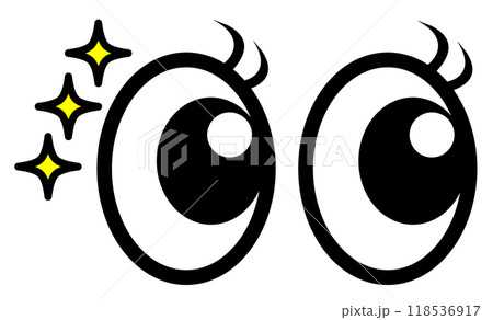 大きい目玉とキラキラの両目の眼差しで注目するイラスト