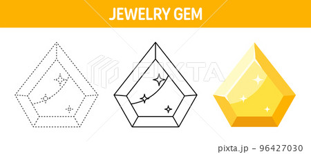 Gem tracing and coloring worksheet for kids