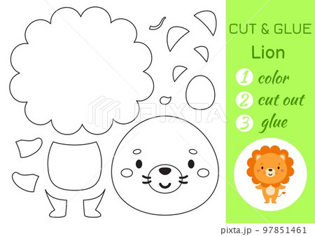 Color, cut and glue paper little lion. Cut and paste crafts activity page. Educational game for preschool children. DIY worksheet. Kids logic game, puzzle. Vector stock illustration