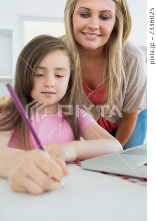 Mummy and her daughter coloring