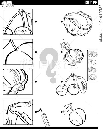 match fruit and vegetables and clippings task coloring page