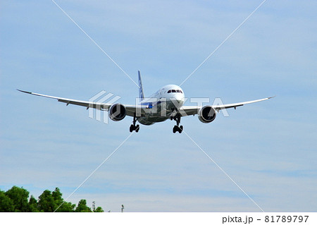 着陸 離陸 ジェット機 旅客機 着陸態勢 青空 草原 ランディング