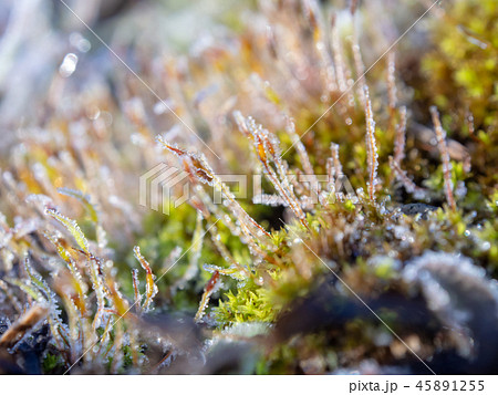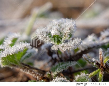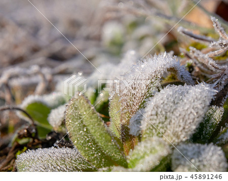 霜が付いた草 植物 寒い 冬の朝