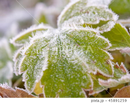 楓の落ち葉に霜 晩秋イメージ