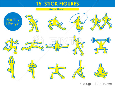 健康的な生活セット。手描きの棒人間。