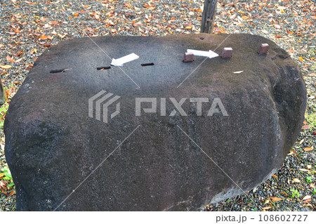 山梨 甲府城 稲荷曲輪の矢穴の空いた兄弟石