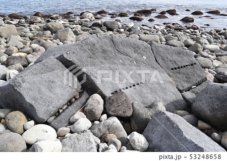 静岡県賀茂郡東伊豆町稲取の海岸に点在する江戸城築城石の採石跡