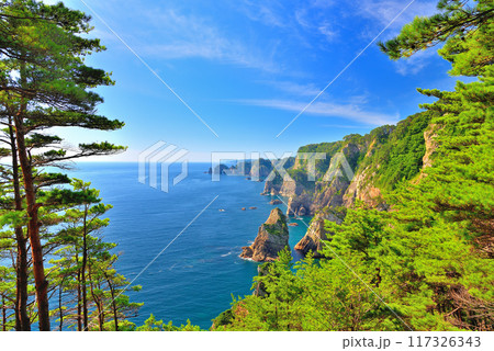 東北・三陸河岸・北山崎・第二展望台より・断崖絶壁が続く美しい海岸線(1)