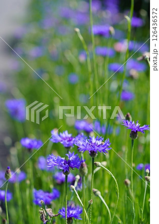 和束石寺地区の道端に咲くヤグルマギク( 矢車菊)