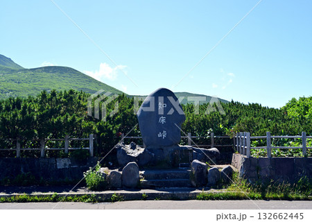 北海道羅臼町 夏の北海道 知床峠から見る晴天の羅臼岳