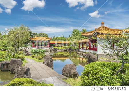 公園の風景 中国の自然山水をイメージした中国庭園 瀋秀園 神奈川県川崎市