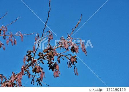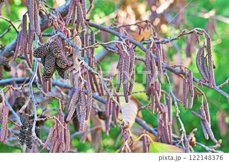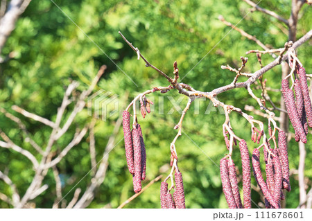 ヤマハンノキの蕾(雄花、雌花)(冬、一月)