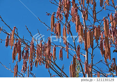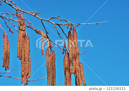 ヤマハンノキの花序(雄花、雌花)(冬、一月)