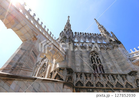 ミラノのドゥオーモのテラスからのドゥオーモ広場とヴィットーリオ・エマヌエーレ2世のガッレリア