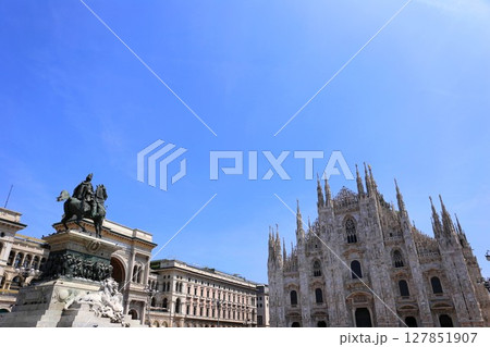 ミラノのドゥオーモとヴィットーリオ エマヌエーレ2世騎馬像