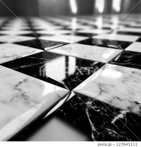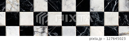 Black and white marble mosaic, seamless checkerboard tile pattern, luxury stone geometry, classic square arrangement for modern interior and decorative surfaces