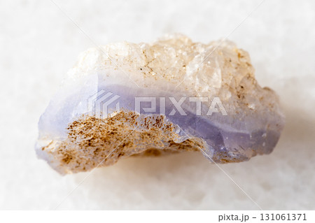 sample of raw blue agate mineral on white marble