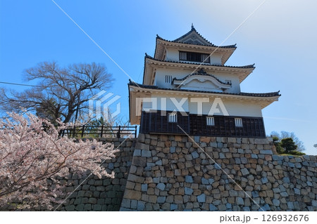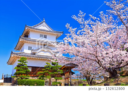 【香川県】桜咲く春の丸亀城(二の丸から見た天守と二の丸に咲く桜)