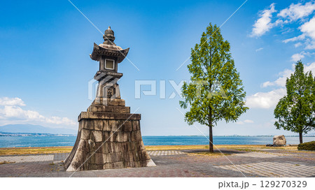 琵琶湖岸の石灯籠 石場常夜燈 滋賀県大津市
