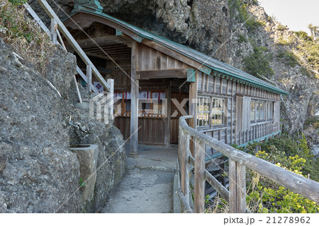 石廊崎の断崖に建つ石室神社、静岡県