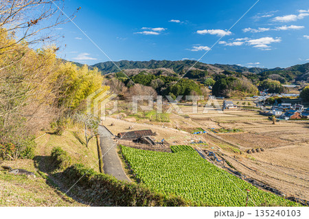 明日香村の遺跡鬼の雪隠と野菜畑 奈良県
